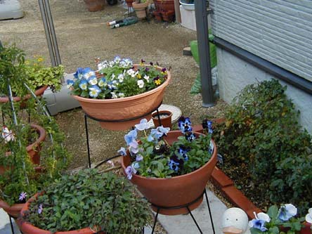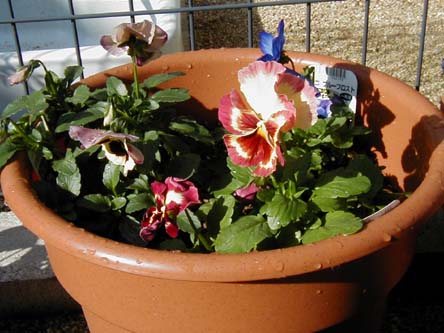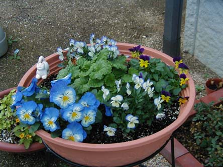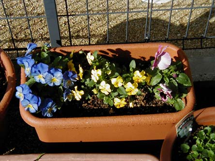 | ビオラもパンジーも咲いてはくれてます。 春になって広がり出したらどうなることやら・・・ |