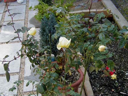 | これも根元にはチューリップの芽が見えてます。 本当にこんなに早く出てしまってだいじょうぶなんだろうか・・・・・ |