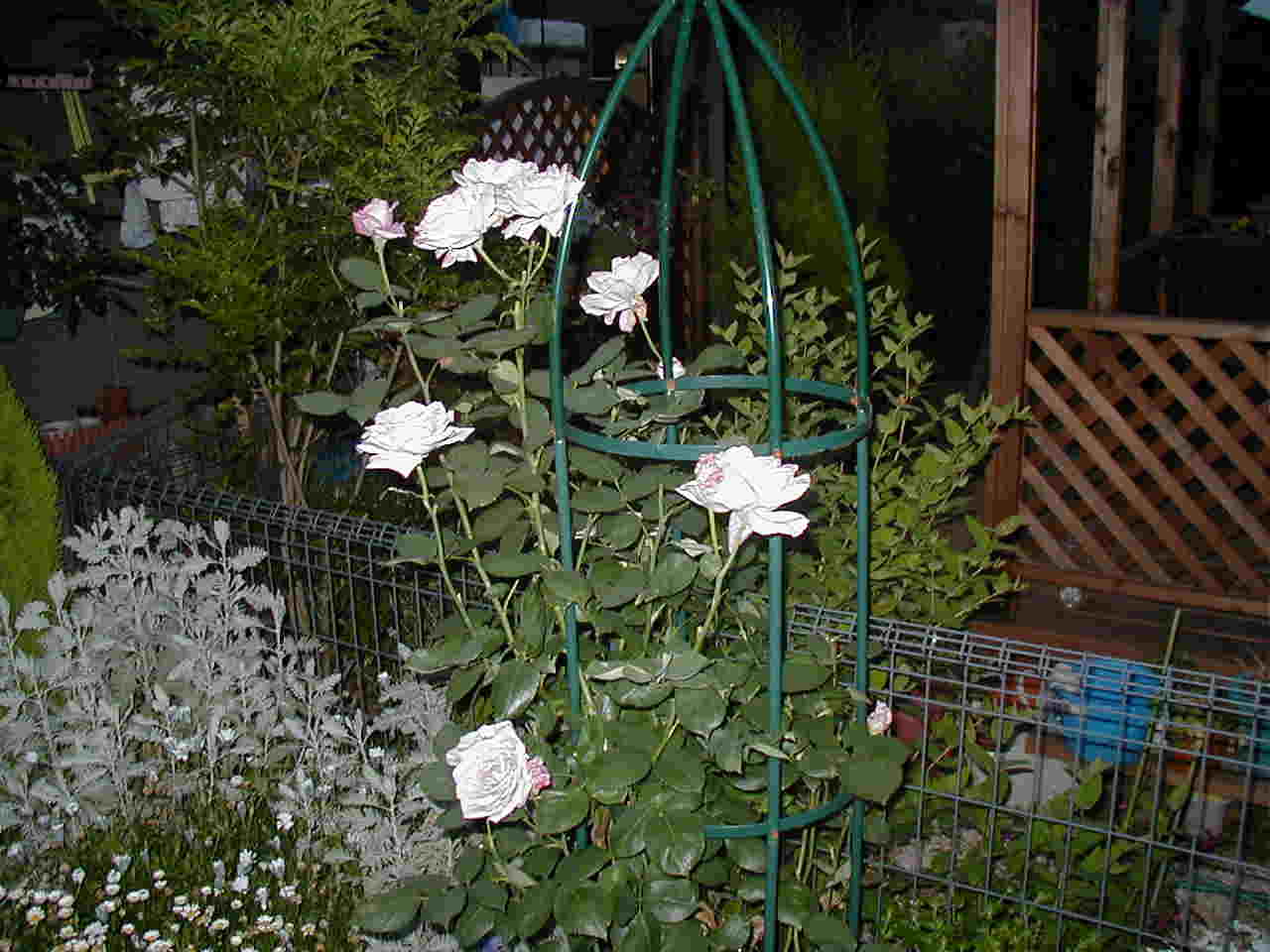 ブルームーンCL これもいい香りが庭中をしめてます。 ことしから地植えにしたのですが、すっごくたくさん花がついてくれてまして、窓を開けるのが楽しみになってます。 |