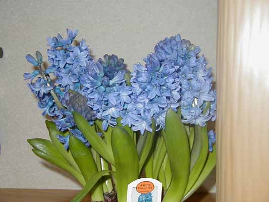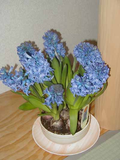 花が無いので、和室を飾っているヒヤシンスです。ちっちゃな鉢に7株あるんですっごいボリューム!