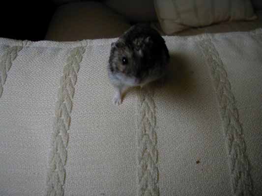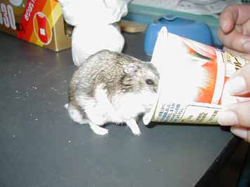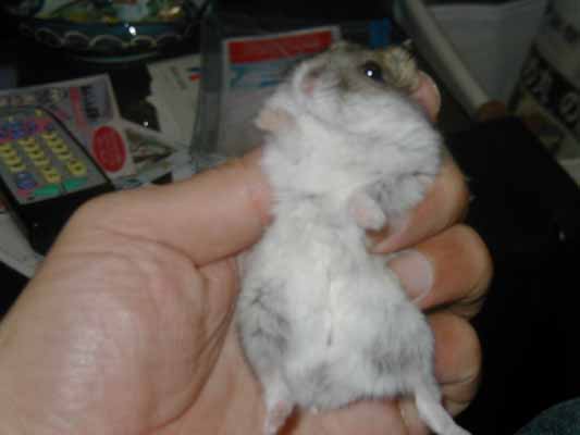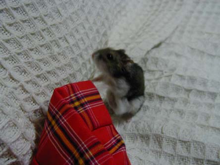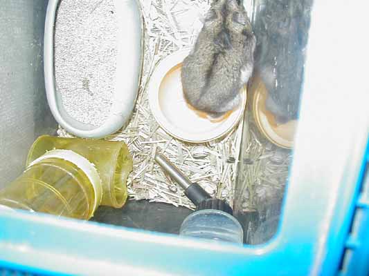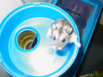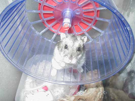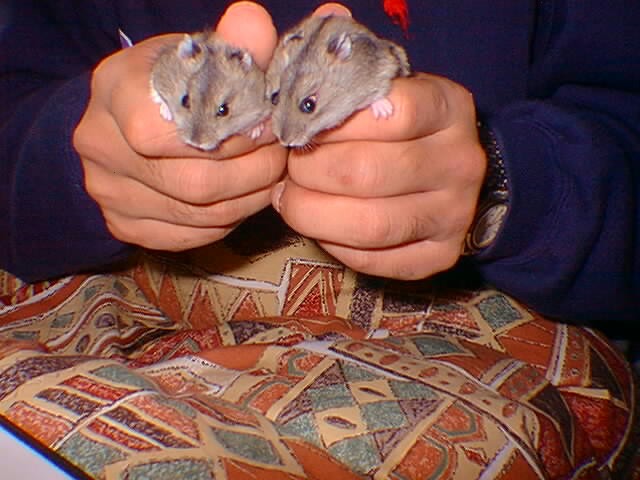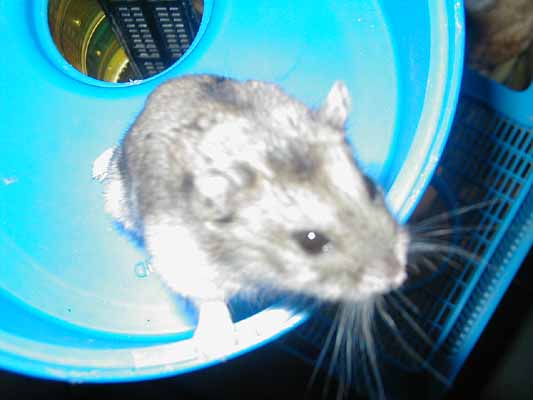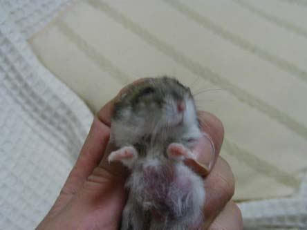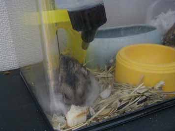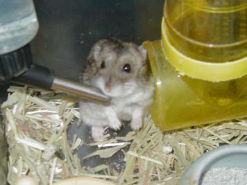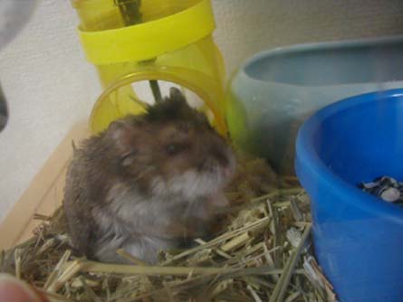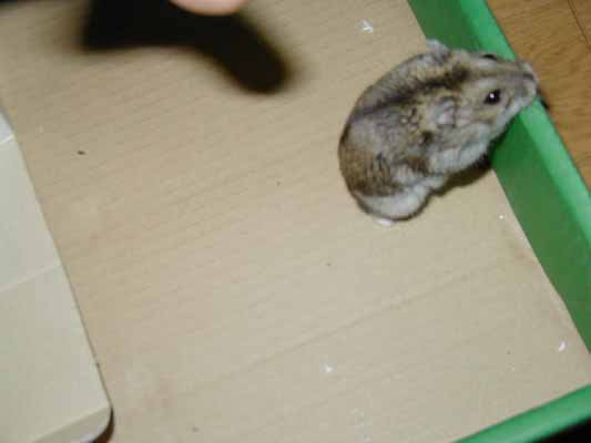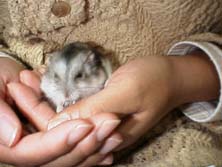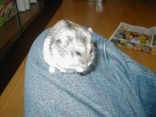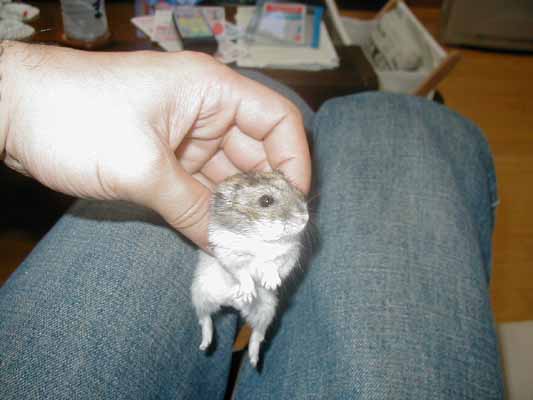 | 2002.5.20 2代目チュウ二郎が天国に?召されました。 去年11月ぐらいにお腹に腫瘍ができ、お腹を引きずって よろけながら歩いてました。あれから半年よくがんばって くれました。 よく人になついていてくれる子でした。 ゲージから脱走しても何故か、隙間に隠れずに人によっ てくる・・・・ 先月ゲージの蓋が緩んでいて脱走した時は、匂いに寄せ られて?か、玄関の梅猫の靴の周りを一晩中うろうろして た・・・・かわいいやつです。 今年の初めシンガポールに旅行したとき、ペットショップに 預けたとき、店員さんが、「すごくなついてくれてますね、 手の上でないとたべないんですか?」って(そんな風に育 てた覚えはなく、おじょうさんだから?・・・・とてもかわい いやつでした。 |
