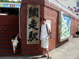 お昼過ぎに網走へ到着。とりあえず網走駅へいって「あんじろ」ってお店でお昼ご飯。ここはガイド本にでていて、お客さんが定期券を壁にはっていくジャズ喫茶なんだって(しっかり大阪は天王寺の定期券もど真ん中に発見!なんかうれしかった)。