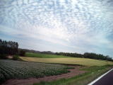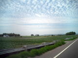 草原と山、ひろーい畑の連続(ずーっと)。気温も涼しく窓をあけて快適に走れました。