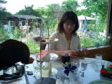 ガーデンの一角で休憩中