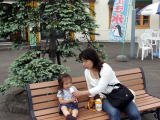 目が覚めて食事をとって、もう一度露天風呂へ。朝の露天風呂きもちいいですねーw。実は前日の夜は露天風呂に入ってると大きな蛾が入浴しにきて・・・・・風呂場を譲ってあげました。(みくちゃんがこわがってゆっくり入れなかったから・・・・)