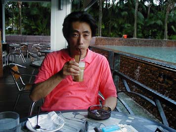 | オーチャードロードの外れ衛兵交代の 前の噴水横のカフェで、アイスコーヒー を注文したけど・・・・コーヒーwithアイス クリームがでてきた。 梅猫は「ノーアイスクリーム.カフェオン リー」と一生懸命主張していたが・・・・ |