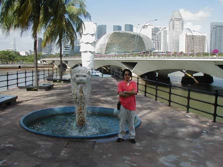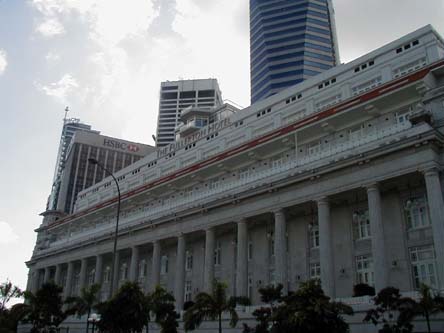 | フラトンほてるです。 玄関から出ると橋が目の前にあって、その 橋をわたるとエスプラネード公園(エリザベ スウォークの端っこ)にでれます。 裏にまわるとマーライオン公園にいけます。 |