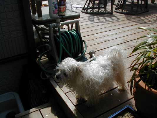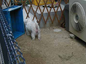 おとなりのマルチーズのチーコちゃん庭にでるとよくあいさつしてくれる。