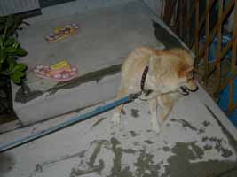 | チーコちゃんの友達がきた!! この犬を散歩させてたのは女の子だったんだけど、ひきずられてました。(飼主の言うこときかず、庭に突進してきてました) |